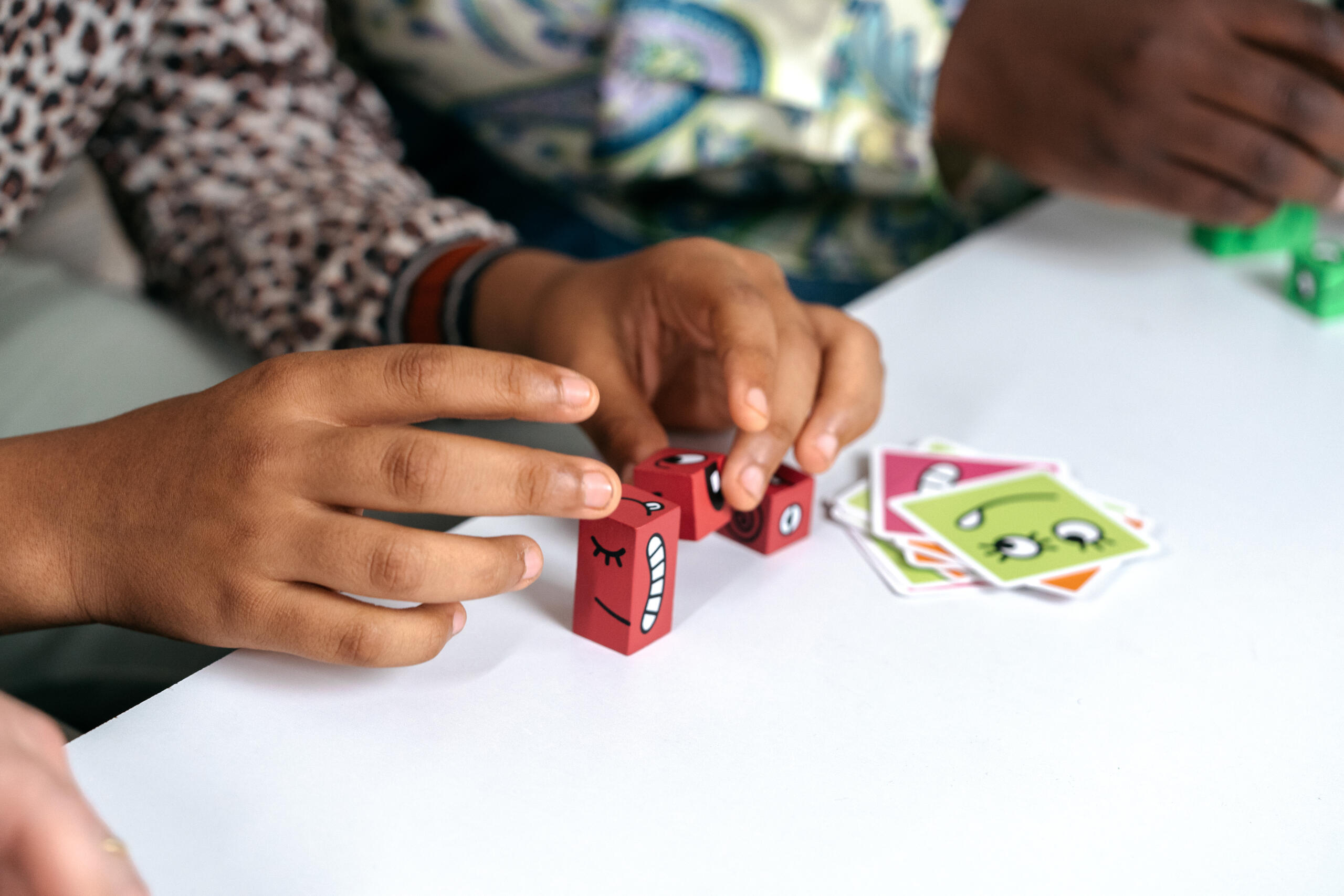 The puzzle-like element keeps the game exciting. Sometimes dice need to be stacked or rotated just right, so no two rounds feel the same. The first player to complete the face correctly wins the card, and the race continues!