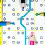 - Color-coded rounds: In each of the four rounds, players use a different colored pencil, constructing four unique subway lines.